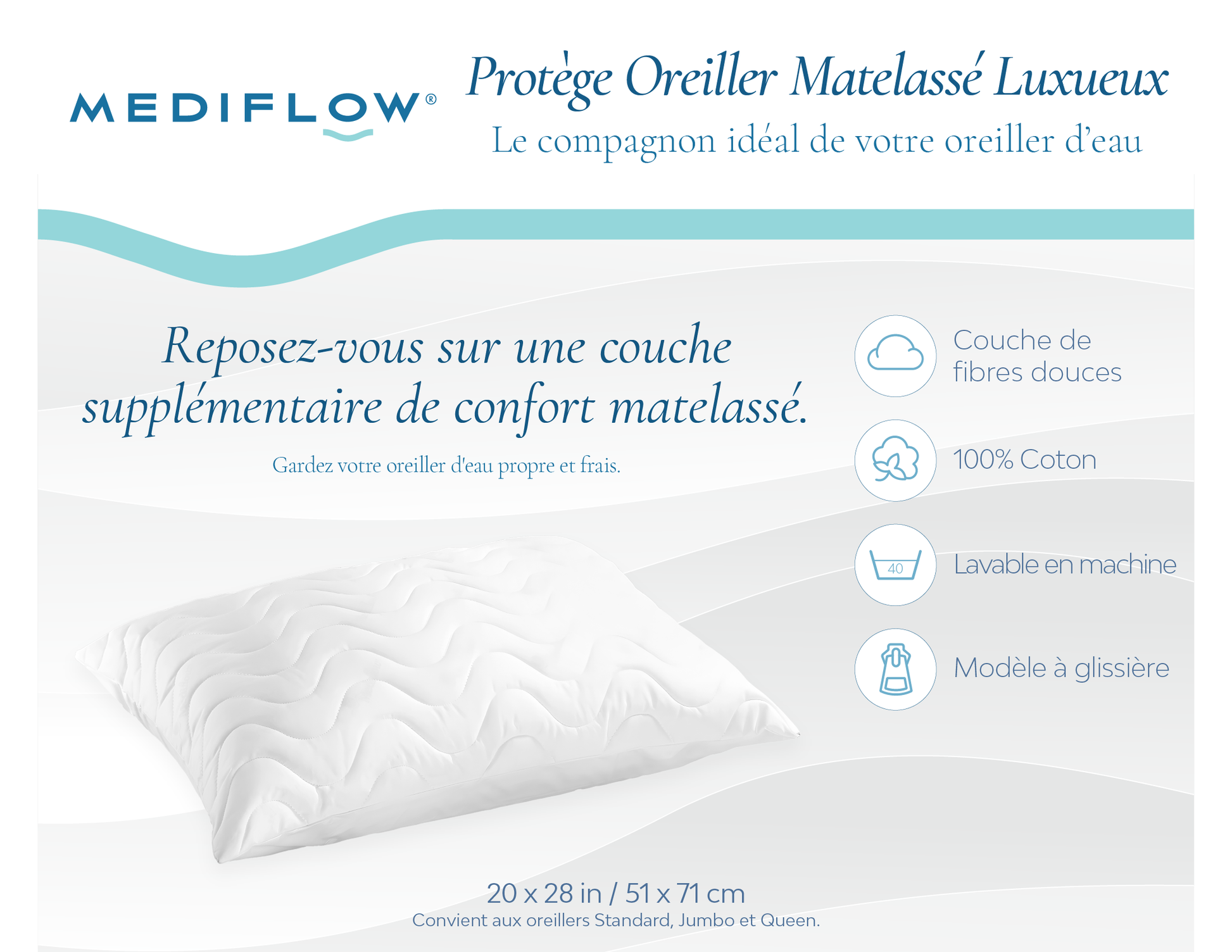 • 20x28 in" fits Standard or Queen Pillows
